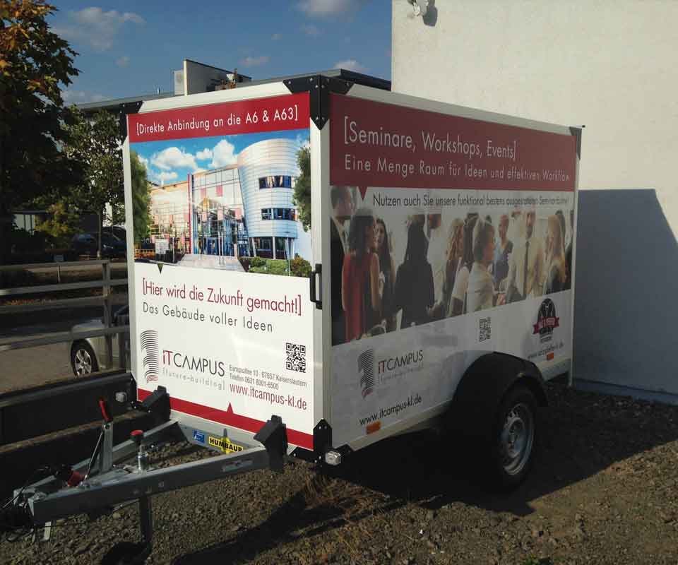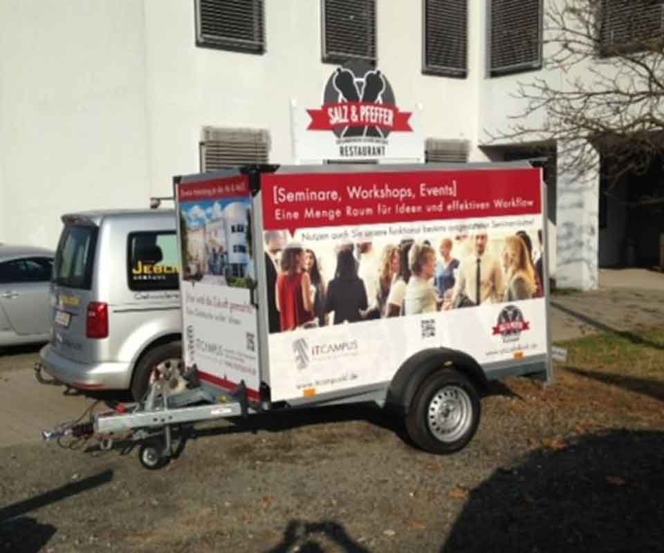 Kaum eine Werbefläche ist so flexibel und günstig wie Ihr Auto. Nutzen Sie die Flächen auf Fahrzeugen, PKWs, LKWs oder Anhängern als günstige Werbefläche. So zeigen Sie zusätzliche Präsenz und erreichen die beste Werbewirkung, dort wo Sie tagtäglich unterwegs sind.